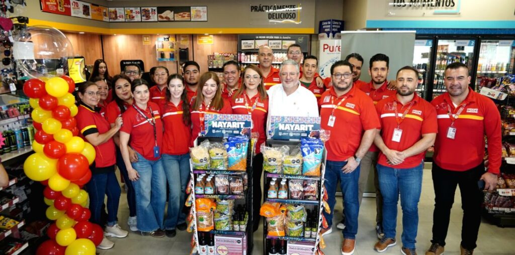 Tepic, Nayarit; 6 de febrero de 2026.– El Gobierno del Estado puso en marcha el exhibidor exclusivo del programa “Nayarit Produce” en las 94 tiendas OXXO distribuidas en la entidad, como parte de la estrategia para fortalecer el desarrollo económico, promover el consumo local y abrir nuevos espacios de comercialización para emprendedoras y emprendedores nayaritas.