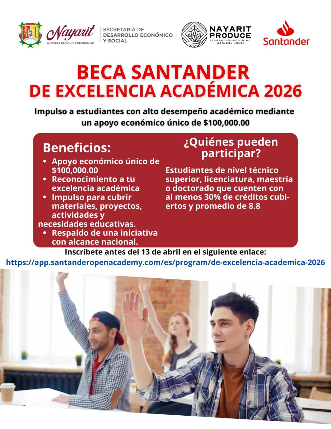 Invitan a estudiantes a participar en la Beca Santander de Excelencia Académica 2026