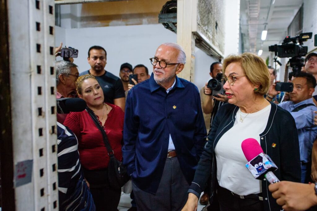 El gobernador estuvo acompañado por la secretaria de Infraestructura, Claudia Raquela Araujo Gómez, con quien revisó de primera mano las necesidades prioritarias y las acciones que se llevan a cabo para avanzar lo más pronto posible en la rehabilitación del mercado. Destacó que la instalación que se tenía estaba fuera de norma, porque no existía la separación de 1 metro entre el gas y la luz.