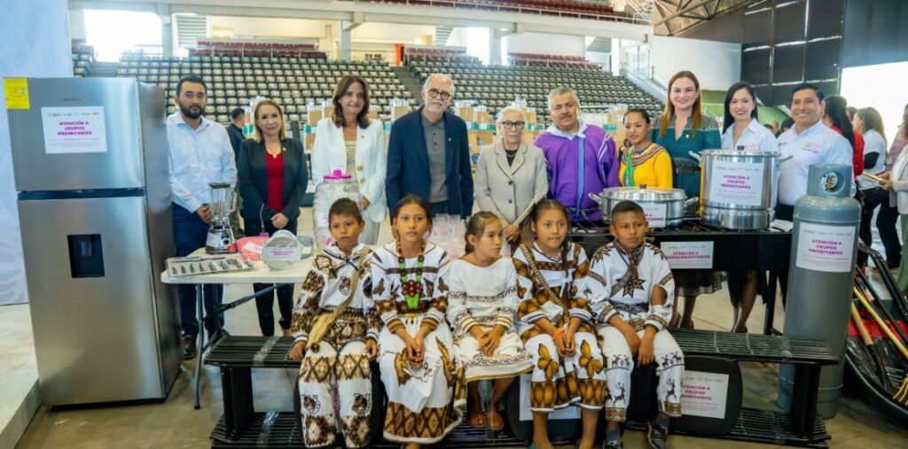 “Es sumamente satisfactorio poder entregar estos apoyos, este equipamiento a 100 escuelas para desayunadores escolares y a 50 escuelas, equipo necesario para establecer huertos escolares. En total 150 escuelas que se están beneficiando con la entrega de este equipamiento. Sin embargo, nosotros podemos decir que el apoyo alimentario es para 85 mil niños en los centros escolares de todo el Estado”, enfatizó.