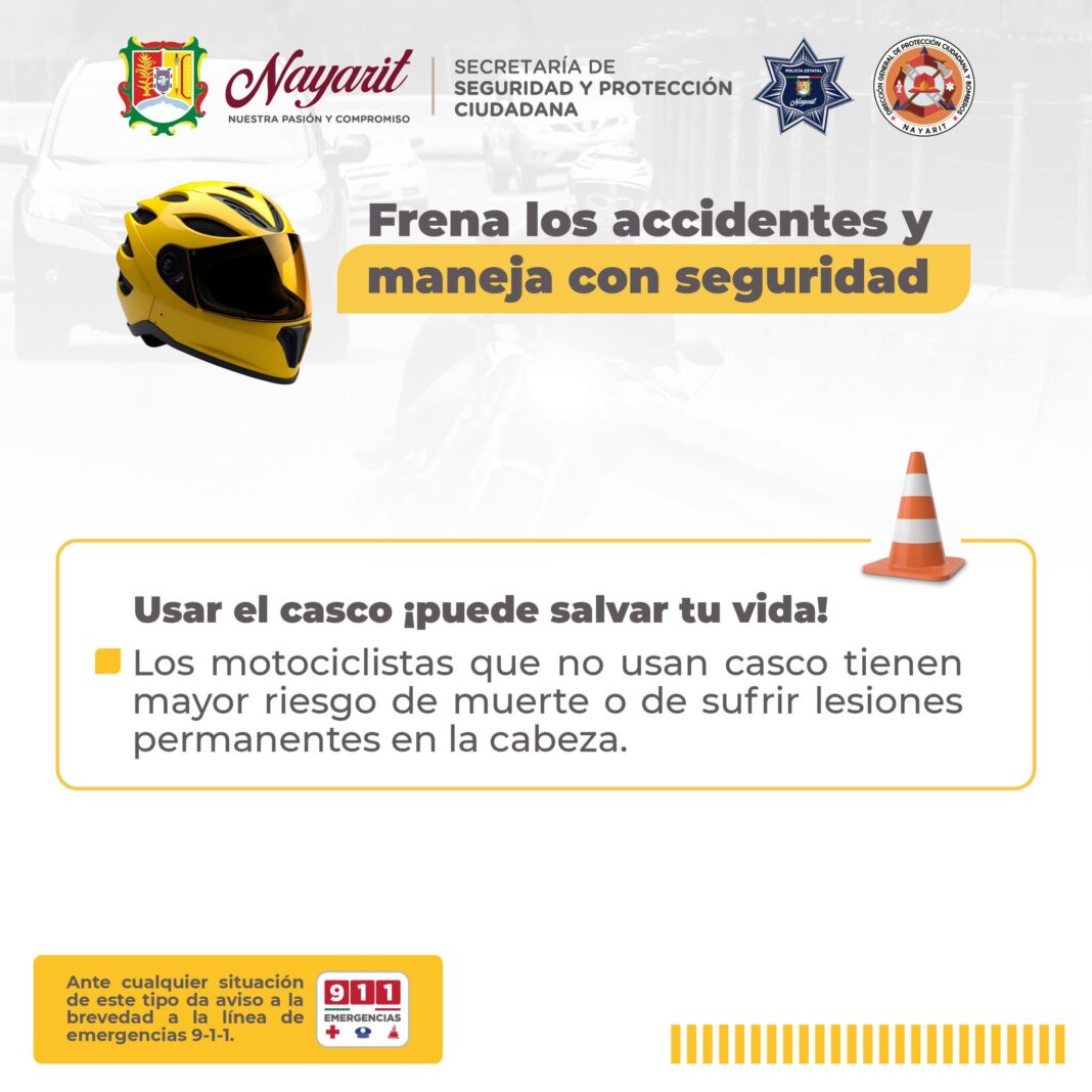 Con el objetivo de fortalecer la seguridad vial y prevenir accidentes, autoridades del Gobierno del Estado de Nayarit exhortan a las y los motociclistas a utilizar casco de protección de manera correcta y permanente al conducir.