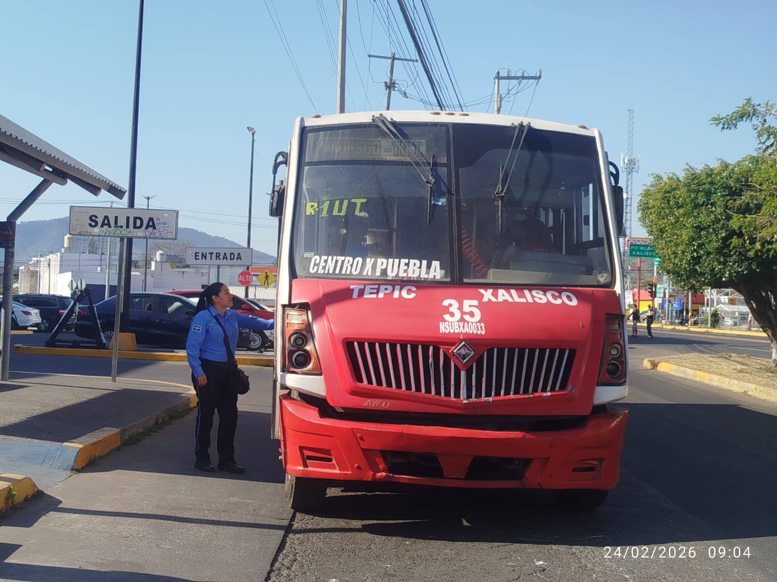 Agentes de la Secretaría de Movilidad del Estado de Nayarit mantienen un operativo de vigilancia y supervisión en el transporte público de la ruta entre Tepic y Xalisco.